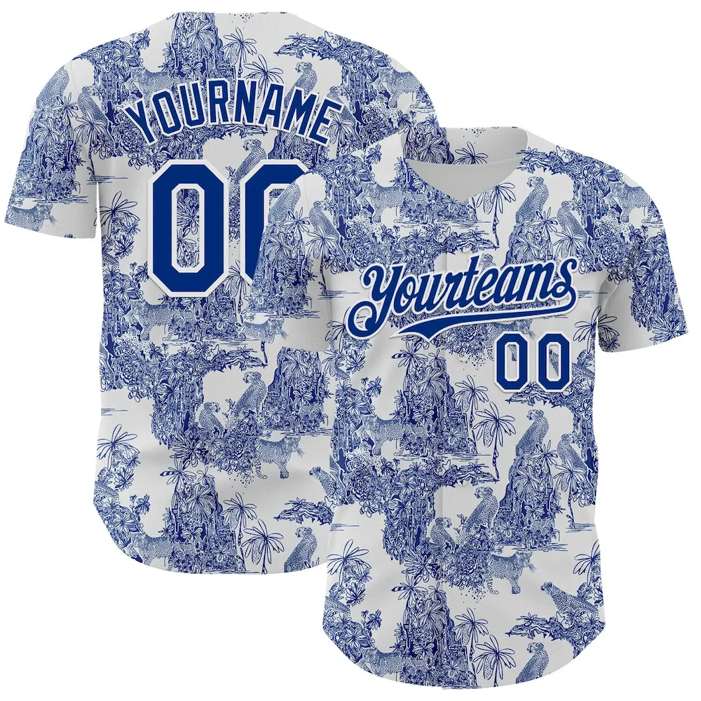 Custom White Royal 3D Hawaii Tropical Jungle Leopard Authentic Baseball Jersey
