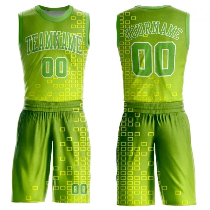 Custom Neon Green Neon Green-Gold Round Neck Sublimation Basketball Suit Jersey
