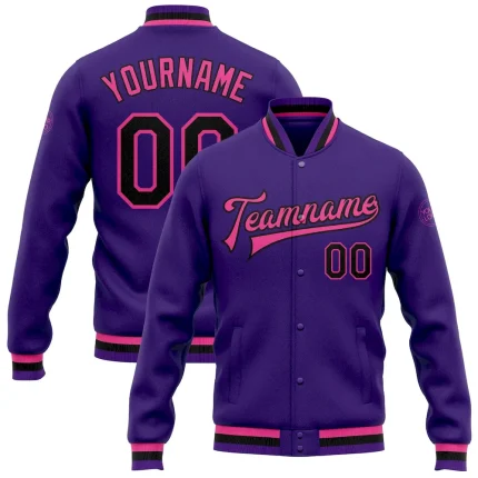Custom Purple Black-Pink Bomber Full-Snap Varsity Letterman Jacket