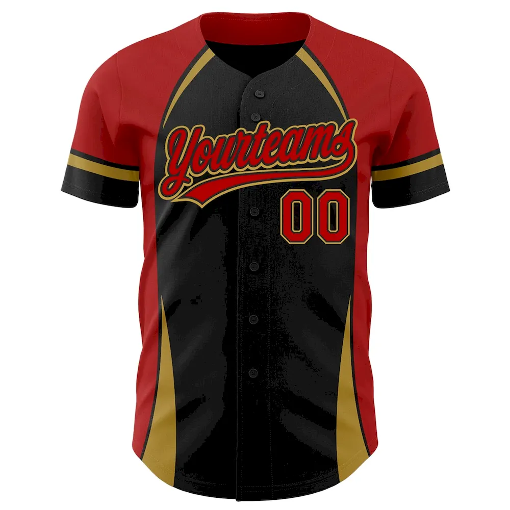 Custom Black Red-Old Gold 3D Pattern Design Curve Solid Authentic Baseball Jersey