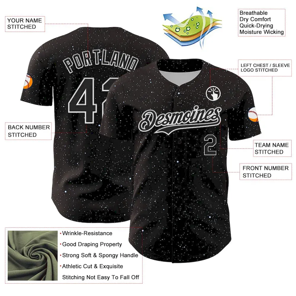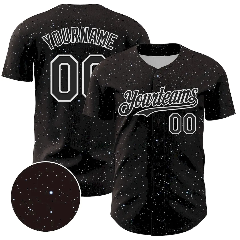 Custom Black White 3D Pattern Design Starry Sky Authentic Baseball Jersey