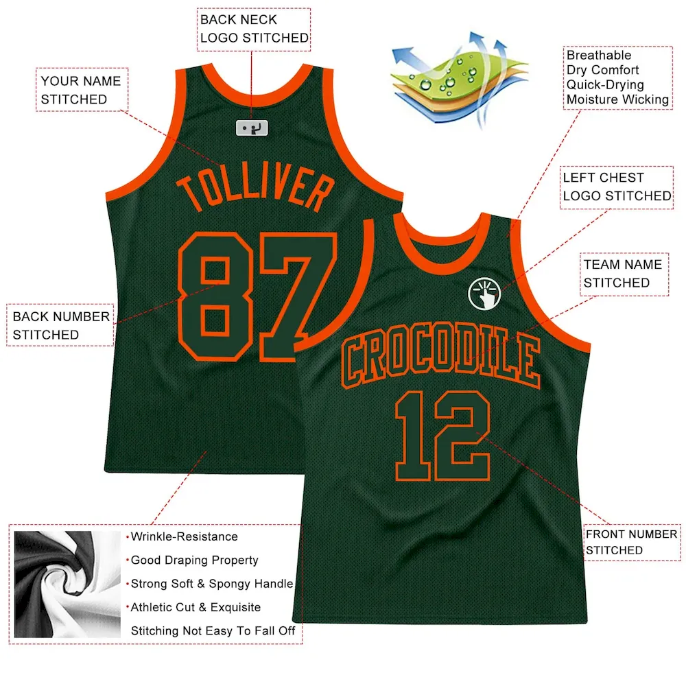 Custom Hunter Green Green-Orange Authentic Throwback Basketball Jersey