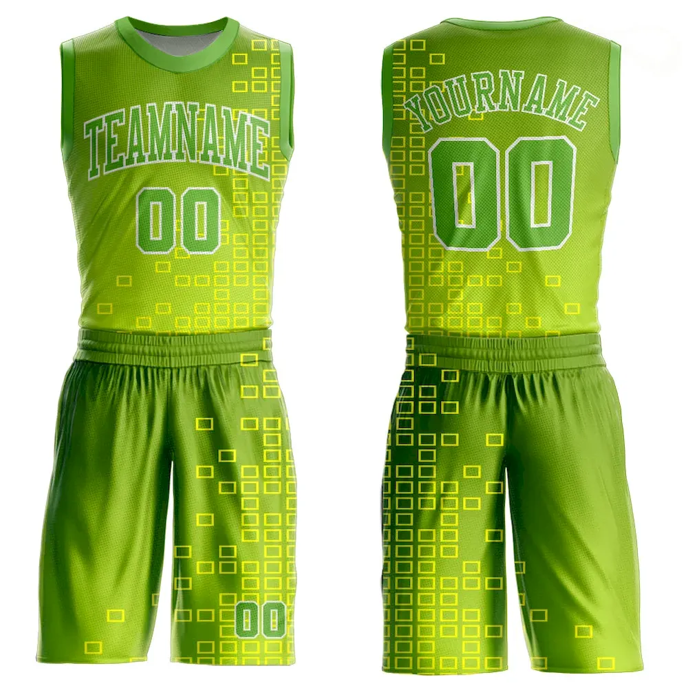Custom Neon Green Neon Green-Gold Round Neck Sublimation Basketball Suit Jersey