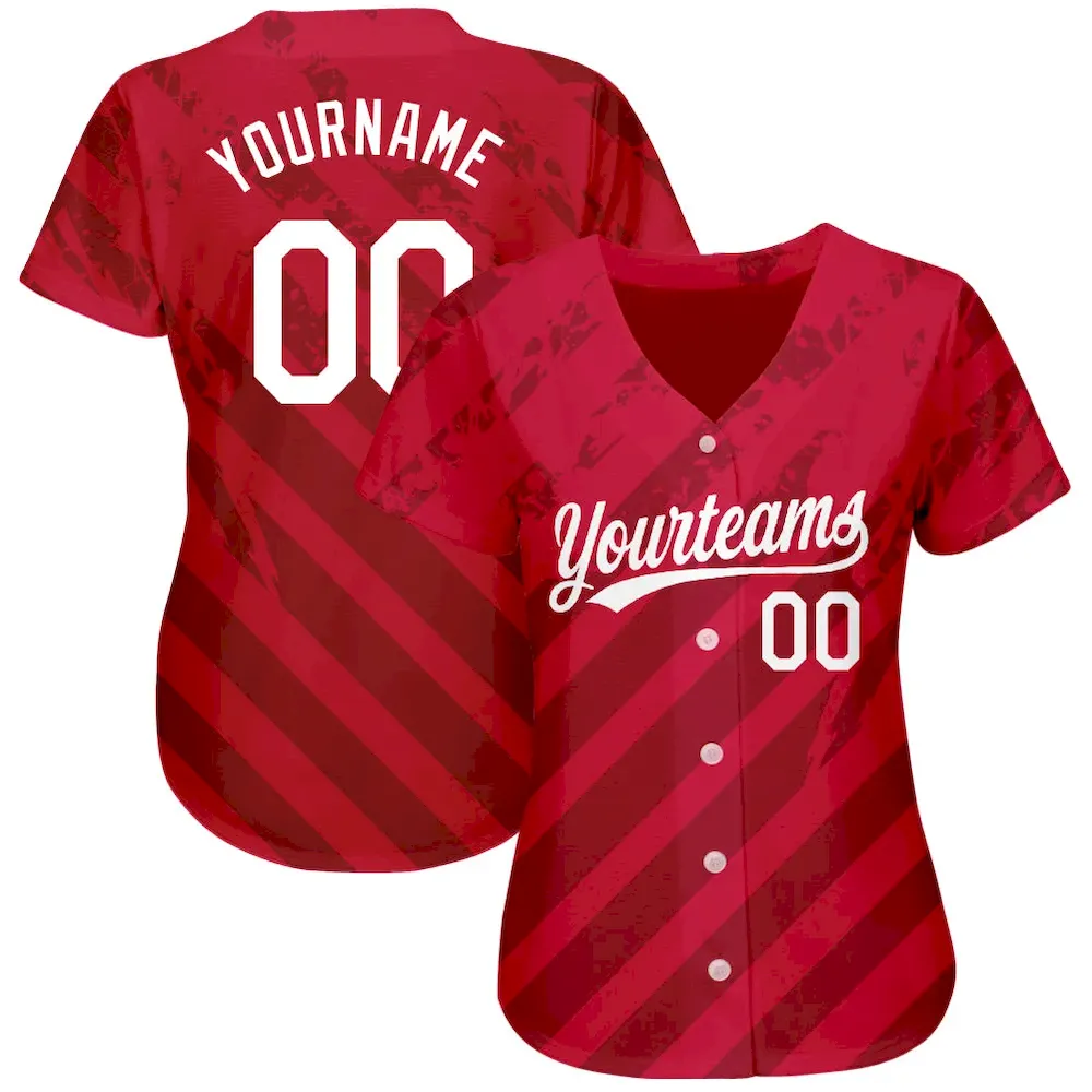 Custom Red White 3D Pattern Design Authentic Baseball Jersey