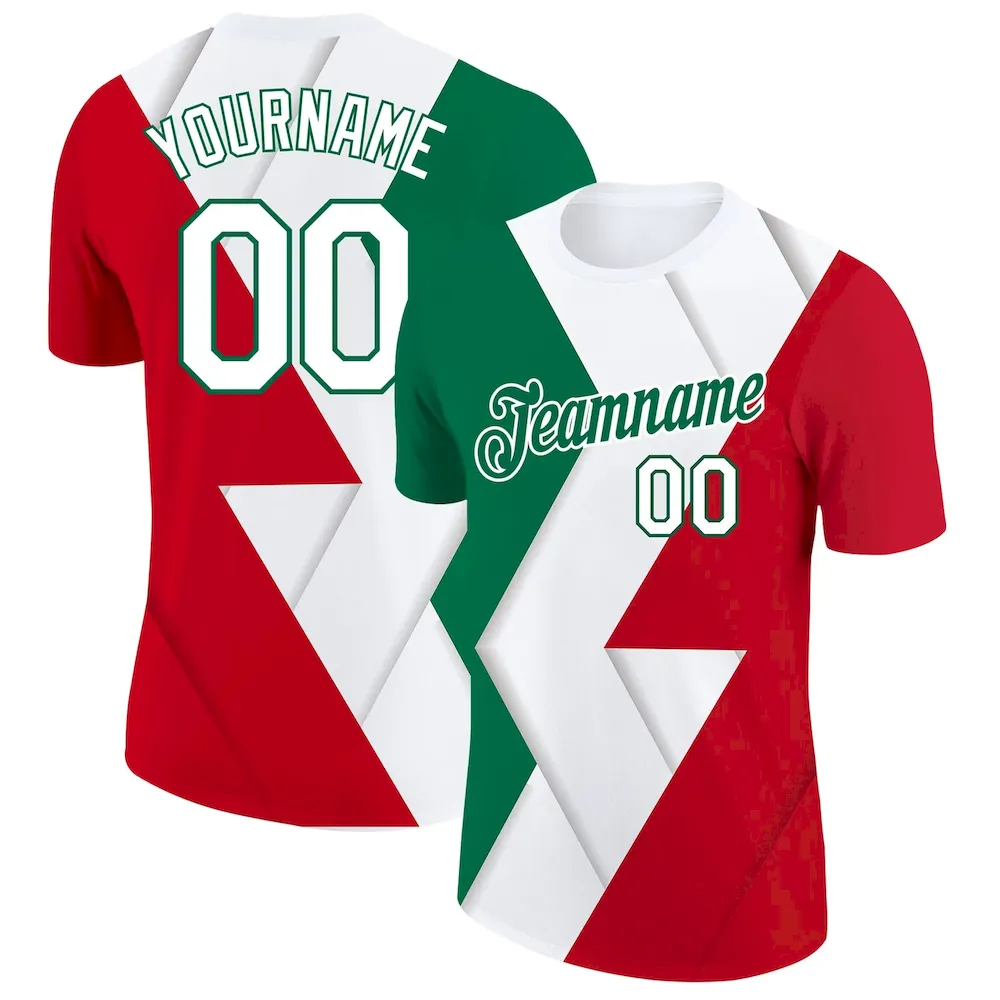Custom Red White-Kelly Green 3D Mexico Performance T-Shirt