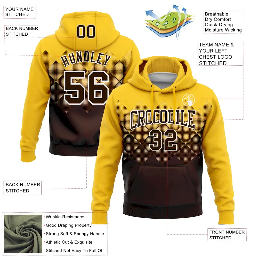 Custom Stitched Yellow Brown-White 3D Pattern Design Gradient Square Shape Sports Pullover Sweatshirt Hoodie