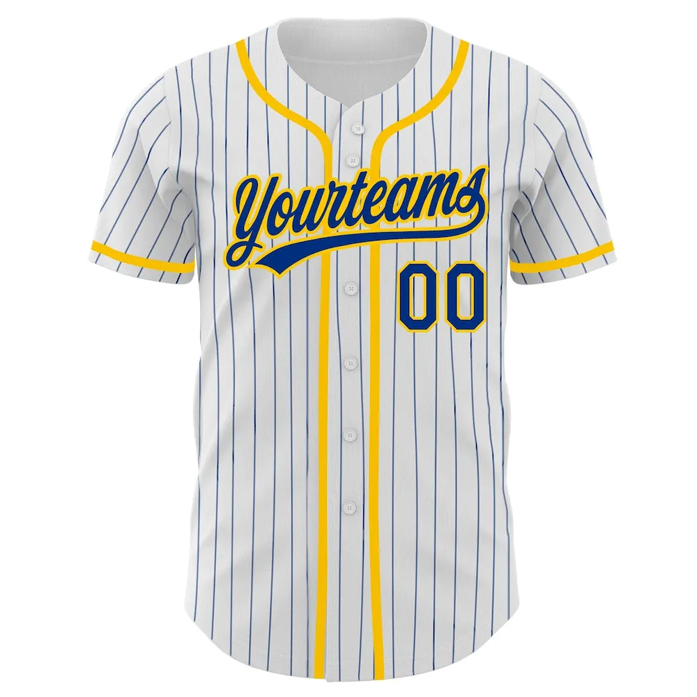 Custom White Royal Pinstripe Royal-Yellow Authentic Baseball Jersey